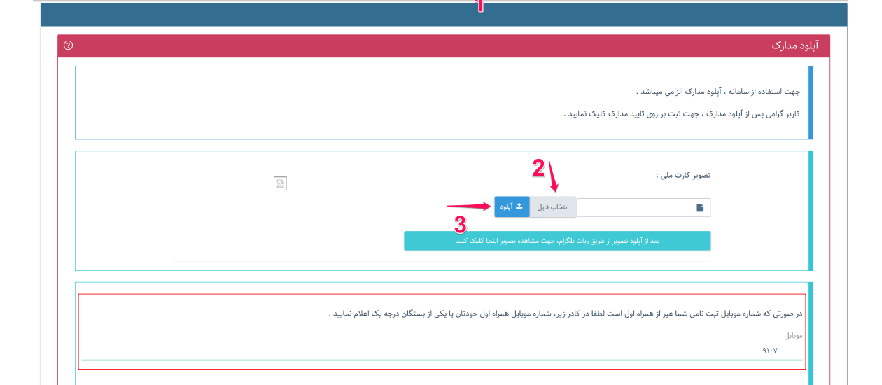 پس از آن باید همانند تصویر زیر بر روی دکمه تکمیل ثبت نام در بالای صفحه کلیک کنید و پس از آپلود تصویر کارت ملی، دکمه تایید و ثبت را بزنید.