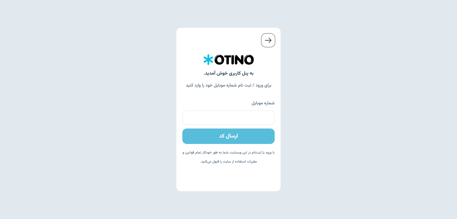 برای انجام این تنظیمات، کافیست در تنظیمات اوتینو، گزینه “ورود با ارسال کد توسط کاربر” را فعال کنید و شماره خط پیامکی اختصاصی پنل کاربریتان را درج نمائید.
