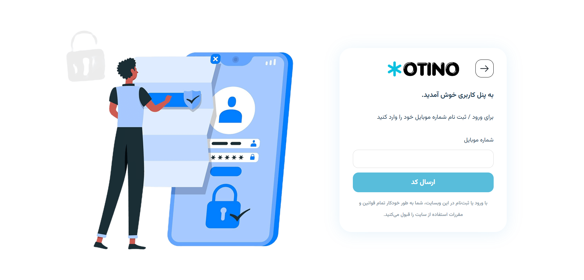 افزونه ورود پیامکی اوتینو فرم ورود و ثبتنام سنتی (ایمیل و رمز عبور) را حذف کرده و کاربران تنها با وارد کردن شماره موبایل و دریافت کد تایید پیامکی، وارد حساب خود میشوند.